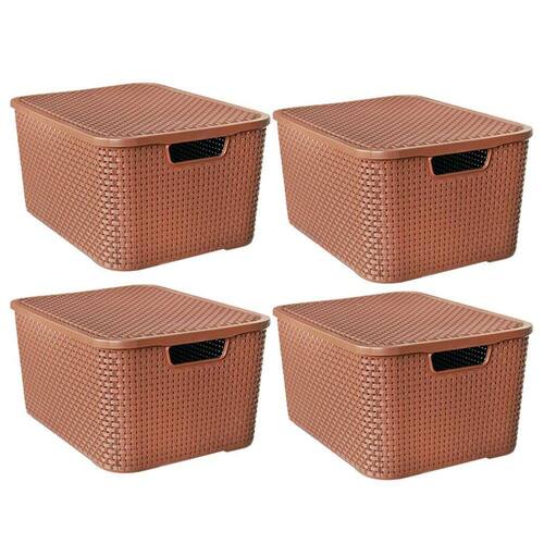 Kit 4 Caixas Organizadoras Rattan Marrom 20 Litros com Tampa 25597 Arqplast Kit 4 Caixas ORGANIZADORas RATTAN com TAMPA 20 MARROM 25597 ARQPLAST Caixa organizadora em plástico com tampa, que facilita a organização de guarda roupas e armários, por ser uma peça charmosa expor em ambientes abertos dá um toque especial a decoração. Combina com vários ambientes, como cozinha, sala, banheiro e quarto. Material - Polipropileno Tamanho - Altura 18 x Largura 26,0 x Comprimento 34,5 cm