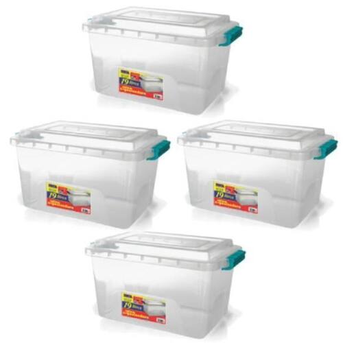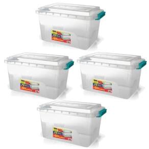 Kit 4 Caixas Organizadoras Transparente Tampa e Travas 19 L 2173 Ercaplast Caixa Organizadora Alta 19 Litros com Travas