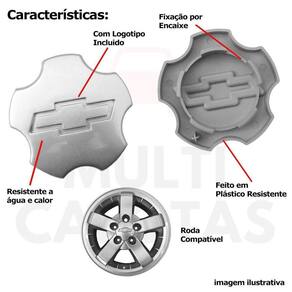 4x Calota Centro Roda GM Blazer Advantage Pitbull 03 a 08 Calota Centro de Roda em Plástico de Alta resistência, Fabricado com os mesmos padrões e exigências da montadora. Com logotipo incluso.