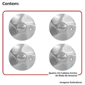 Centro de roda produzida em plástico resistente. Possuindo segura e prática aplicação através de encaixe na própria calota. Características: - calota em plástico resistente - cor: prata - fixação: por parafuso não incluso - alta qualidade e resistência Itens inclusos: - quatro 4 calotas centro de roda com emblema. Dimensões: individual - diâmetro: 15 cm - altura: 1,5 cm de 30 dias para defeitos de fabricação. Marca: Não Informado Ean: 7895915436944