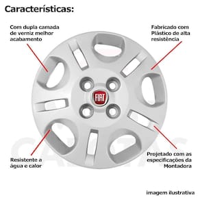 Kit 4 calota fiat mille palio siena uno aro 13 emblema 071cb Calota em plástico de alta resistência, Fabricado pela grid calotas com os mesmos padrões e exigências da montadora. Com logotipo incluso. Jogo de calotas para a linha fiat para roda de ferro aro 13. Não serve nos fiat strada - fiat palio adventure - fiat nova fiorino Características: - fabricado em plástico resistente - com dupla camada de verniz - resistente a água e calor - feito de acordo com os padrões da montadora - fixação: por parafusos - furação: 4x100 - cubo: baixo - cor: prata - referência: 071cb - marca: grid calotas Itens inclusos: - um 1 kit com quatro 4 calotas com emblema incluso. Dimensões unitário - diâmetro: 37 cm - altura: 4 cm Instalação A instalação é feita de forma simples, podendo ser feita por você mesmo. Não necessita retirar todos os parafusos. de 30 dias para defeitos de fabricação. Sobre o envio Envio podendo ser feito até o próximo dia útil após confirmação de pagamento. em até 3 , em caso de boleto Política de troca Sempre estamos interessados em sua satisfação. Caso não receba o produto exatamente como no anúncio, com algum defeito ou no transporte, Você poderá trocar e devolver a qualquer momento, sem pressa, sem prazo e principalmente sem custos desde que o produto esteja sem uso e na mesma condição da data da compra . No caso de devolução por compra de tamanho errado, desistência ou mudança de intenção, Neste caso o cliente deve arcar com o custo da devolução da mercadoria e nós arcamos com o custo de reenvio Da mercadoria nova.