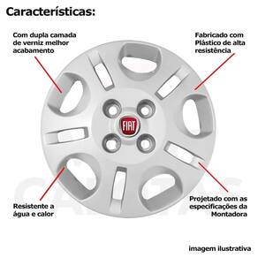 Kit 4 calota fiat mille palio siena uno aro 13 emblema 071cb Calota em plástico de alta resistência, Fabricado pela grid calotas com os mesmos padrões e exigências da montadora. Com logotipo incluso. Jogo de calotas para a linha fiat para roda de ferro aro 13. Não serve nos fiat strada - fiat palio adventure - fiat nova fiorino Características: - fabricado em plástico resistente - com dupla camada de verniz - resistente a água e calor - feito de acordo com os padrões da montadora - fixação: por parafusos - furação: 4x100 - cubo: baixo - cor: prata - referência: 071cb - marca: grid calotas Itens inclusos: - um 1 kit com quatro 4 calotas com emblema incluso. Dimensões unitário - diâmetro: 37 cm - altura: 4 cm Instalação A instalação é feita de forma simples, podendo ser feita por você mesmo. Não necessita retirar todos os parafusos. de 30 dias para defeitos de fabricação. Sobre o envio Envio podendo ser feito até o próximo dia útil após confirmação de pagamento. em até 3 , em caso de boleto Política de troca Sempre estamos interessados em sua satisfação. Caso não receba o produto exatamente como no anúncio, com algum defeito ou no transporte, Você poderá trocar e devolver a qualquer momento, sem pressa, sem prazo e principalmente sem custos desde que o produto esteja sem uso e na mesma condição da data da compra . No caso de devolução por compra de tamanho errado, desistência ou mudança de intenção, Neste caso o cliente deve arcar com o custo da devolução da mercadoria e nós arcamos com o custo de reenvio Da mercadoria nova. Marca: Não Informado