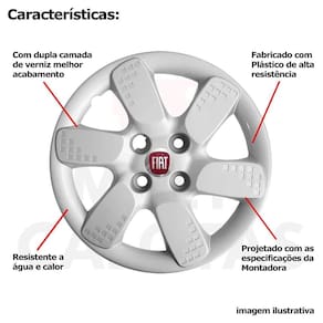 Kit 4 calota fiat uno mille palio siena aro 13 095cb Calota em plástico de alta resistência, Fabricado pela grid calotas com os mesmos padrões e exigências da montadora. Com logotipo incluso. Não serve: Fiat strada - cubo de roda incompatível Fiat palio adventure - cubo de roda incompatível Fiat nova fiorino - cubo de roda incompatível Características: - fabricado em plástico resistente - com dupla camada de verniz - resistente a água e calor - feito de acordo com os padrões da montadora - fixação: por parafusos - furação: 4x100 - cubo: baixo - cor: prata - referência: 095cb - marca: grid calotas Itens inclusos: - um 1 kit com quatro 4 calotas com emblema incluso. Dimensões unitário - diâmetro: 37 cm - altura: 4 cm Instalação A instalação é feita de forma simples, podendo ser feita por você mesmo. Não necessita retirar todos os parafusos. de 3 meses. Sobre o envio Envio podendo ser feito até o próximo dia útil após confirmação de pagamento. em até 3 , em caso de boleto Política de troca Sempre estamos interessados em sua satisfação. Caso não receba o produto exatamente como no anúncio, com algum defeito ou no transporte, Você poderá trocar e devolver a qualquer momento, sem pressa, sem prazo e principalmente sem custos desde que o produto esteja sem uso e na mesma condição da data da compra . No caso de devolução por compra de tamanho errado, desistência ou mudança de intenção, Neste caso o cliente deve arcar com o custo da devolução da mercadoria e nós arcamos com o custo de reenvio Da mercadoria nova. Marca: Não Informado Ean: 7895524609043