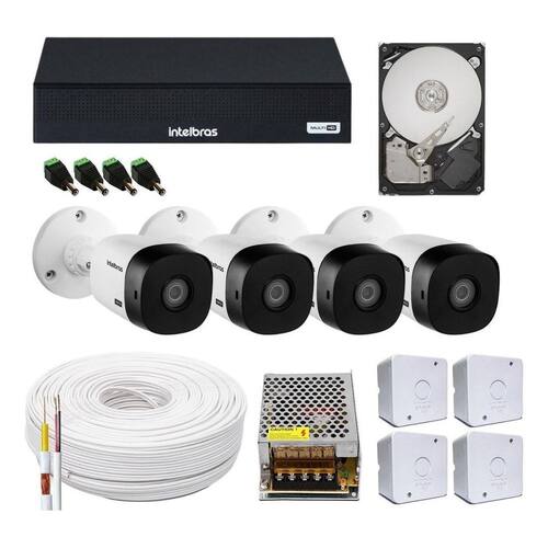 Kit 4 Câmeras Bullet Dvr Intelbras Hd 500g e Sobrepor Kit cftv Intelbras completo com HD 500 gigas, câmera de segurança Intelbras VHC 1120 bullet e dvr Intelbras 1004c 4 canais. Este kit camera de segurança Intelbras pode ser para monitorar áreas internas ou externas. Acompanha caixas de sobrepor para organização e melhor acabamento em sua instalação. Acesso via celular pelo aplicativo Isic Lite. Itens Inclusos no Kit de cameras Intelbras: 01 Dvr Stand Alone Intelbras 4 canais MHDX 1104. 01 HD 500 gigas para o DVR Stand Alone. 04 Câmeras Intelbras infravermelho HD 720P lente 2,8mm VHC 1120B. 01 Fonte de alimentação 12V 5A. 08 Conectores BNC de Mola. 04 Conectores P4 Macho com borne. 01 Rolo de 100 metros de cabo coaxial 4mm 80% malha. 04 Caixas de sobrepor para conectores. Características do DVR Intelbras Multi HD 1004c: Compatível com 3 tecnologias: HDCVI + HDTVI 2.0 + AHD. Visualização em 1080p. Gravação de todos os canais em 1080N ou 720p. Saídas de vídeo VGA, HDMI e BNC. Reprodução em tempo real, detecção de movimento e busca avançada. Compatibilidade com ONVIF Perfil S. Suporta 1 HD SATA de até 8TB Acompanha HD de 500GB Edição de áudio e vídeo. Modo NVR - Transforma todos os canais BNC em IP. Função BNC + IP - Adiciona câmeras IP ao DVR. Ipv6. Características técnicas da câmera Intelbras: Resolução real HD: 720p. Lente: 2.8 mm. Alcance infravermelho: 20 metros. Quantidade de LEDs: 2. Day & Night Automático: Ajustável , Colorido, P&B. Saída de vídeo: BNC fêmea. Alimentação: Conector P4 fêmea. Tensão: 12Vdc Cor case: Branco. Tipo: case / material Bullet / Plástica. Local de instalação: Interno e Externo. Imagens Ilustrativas com Design sujeito a Alteração. do vendedor: 06 meses Homologação Anatel: 149822010251 Marca: Não Informado