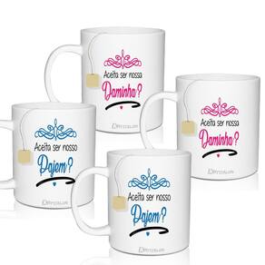 Kit 4 Canecas Convite 300 Ml Personalizadas Pajem&Daminha