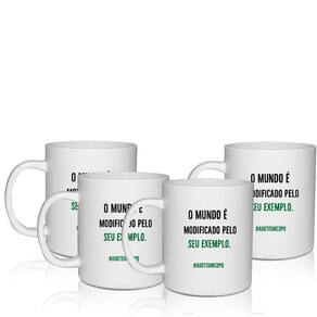 Kit 4 Canecas Eco Personalizadas Mude Seus Hábitos Caneca eco personalizada para ajudar o meio ambiente. Adote a sua caneca e evite descartáveis. Juntos somos mais fortes. Confira as opções de copos, taças e canecas ecológicas personalizadas. Especificações: material: acrílico policarbonato liso , não é porcelana, altura: 8,3 cm, diâmetro: 7,5 cm, capacidade: 300 ml, cor: branco, quantidade: 4 peças Ean: 7897581925418