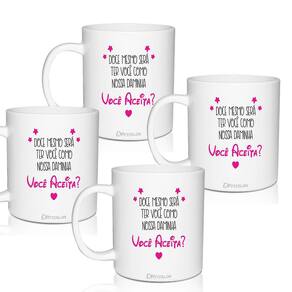 Kit 4 Canecas Lembrança Personalizada Daminha - Você Aceita As Canecas Convite são uma forma linda e deliciosa de convidar ou agradecer os pequenos por participarem de uma data tão única Com capacidade de 300 ml, você tem a opção de encher as canecas com todo tipo de doce e assim encantar as futuras Daminhas O sim delas será GARANTIDO Personalize também do seu Jeito 4 Canecas Convite Branca Personalizado Daminha Capacidade: 300 ml Cor: Branco Material: Policarbonato Quantidade: 4 Peças Ean: 7897581923667