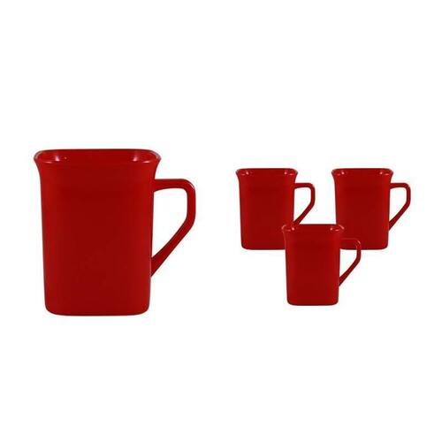 Kit 4 Canecas Quadrada Vermelho 250Ml Plástico Premium