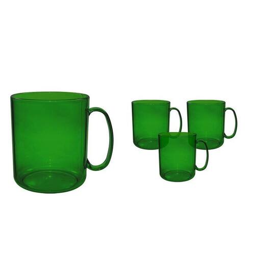 Kit 4 Canecas Redonda Cristal Verde 400Ml Plástico