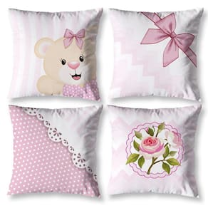 Kit 4 Capas Almofada Infantil 40Cm X 40Cm Estampadas Ursinha