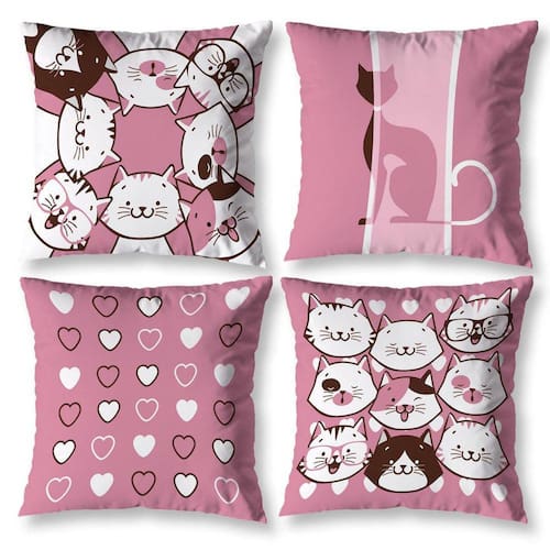 Kit 4 Capas De Almofada Sala 40Cm X 40Cm Estampadas Gatos