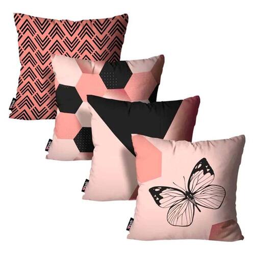 Kit com 04 Capas para almofadas Decorativas 45x45 - Borboleta Geometrica Rose