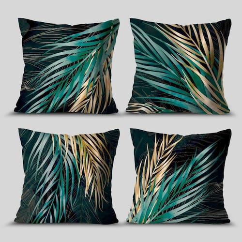 Kit 4 Capas de Almofadas Decorativa Folhas Fênix -
