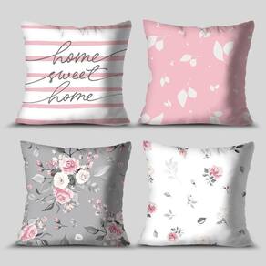 Compre agora mesmo o Kit 4 Capas de Almofadas Decorativa Home Sweet Rosas, pelo menor preço.