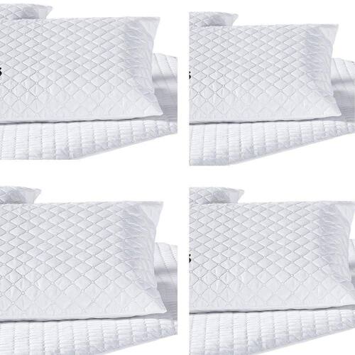 Kit 4 capas fronhas protetoras impermeável matelada para travesseiro O protetor de travesseiro impermeável matelado com zíper irá proteger seu travesseiro de eventuais acidentes com bebidas, líquidos, sujeira em geral e também da transpiração noturna, o que poderá proporcionar maior vida útil para ele. Importante: este kit contém 04 capas protetoras para travesseiros, protetor de colchão não incluso. Foto meramente ilustrativa.