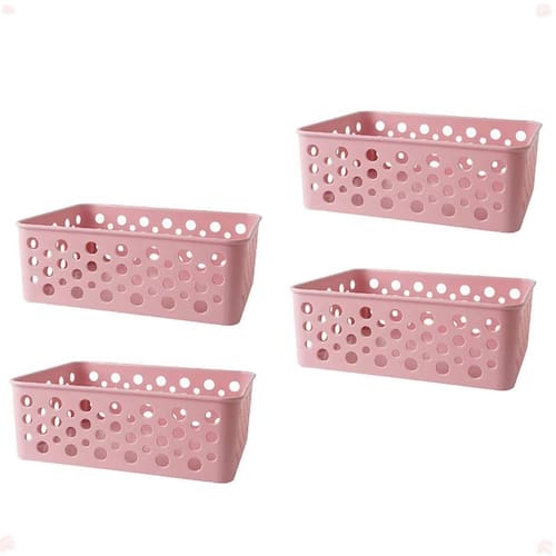 Kit 4 cesto organizador multiuso p 19x13,8x6,5cm rose Cesto rose p 19x13,8x6,5cm plástico multiuso
