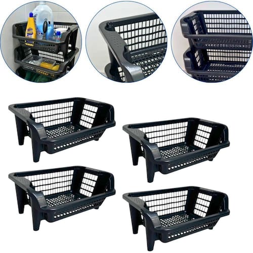 Kit 4 Cesto Plástico Expositor Empilhável Preto 16 Litros