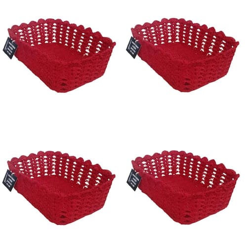 Unidades por Kit: 4 Cestos Comprimento: 26 cm Largura: 18 cm Altura: 9 cm Fabricação artesanal em croche Cores disponíveis: Branco, rosa e vermelho escolha a cor de sua preferência e adicione no carrinho de compras . Marca: Não Informado