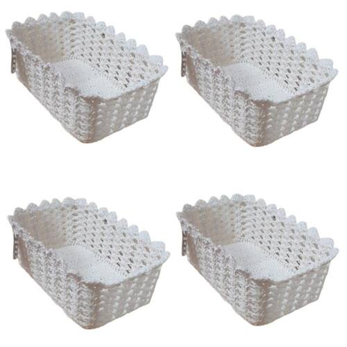 Unidades por Kit: 4 Cestos Comprimento: 26 cm Largura: 18 cm Altura: 9 cm Fabricação artesanal em croche Cores disponíveis: Branco, rosa e vermelho escolha a cor de sua preferência e adicione no carrinho de compras . Marca: Não Informado
