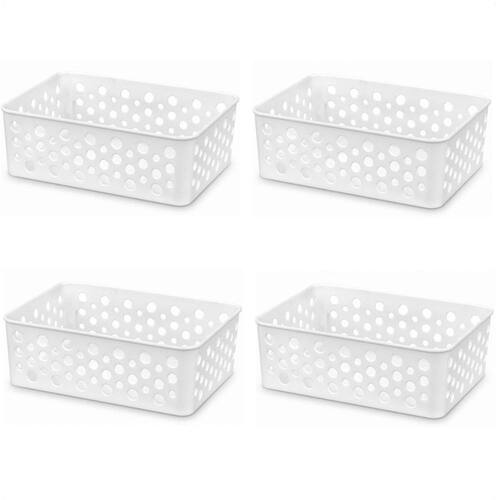 Kit 4 cestos branco p 19x13,8x6,5cm plástico multiuso