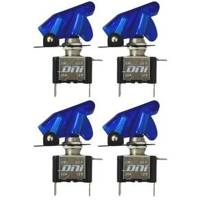 Kit 4 chave tic-tac tipo caça 2 posições botão liga desliga 12v capa azul led comutadora dni2084-az