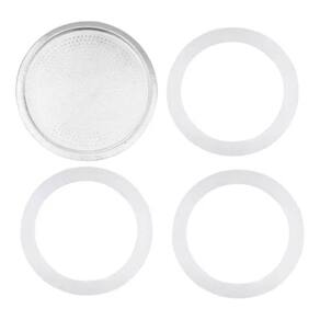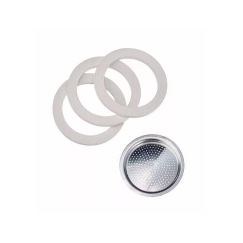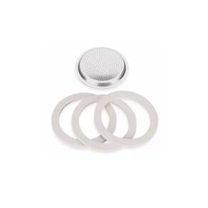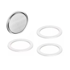 O Kit 4 Com 3 Borrachas+ 1 Filtro Cafeteira Italiana 3 Xícaras é perfeito para os amantes de café moka. Este kit contém 1 filtro e 3 borrachas de vedação, garantindo a melhor experiência na hora de preparar o seu café.