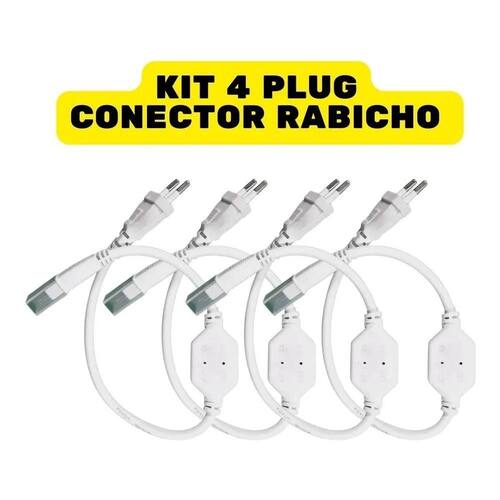 Kit 4 Conector Plug Tomada Fonte Rabicho Mangueira Led Chata