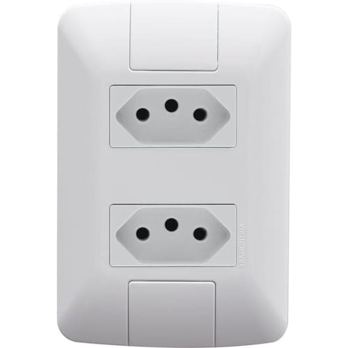 Com o Conjunto 4x2 com 2 Tomadas 2P T Tramontina Aria 10 A 250 V Branco você terá mais praticidade na hora de ligar mais de um equipamento elétrico ou eletrônico ao mesmo tempo. Produzido em termoplástico com acabamento brilho na cor branca, ele possui sistema modular com o suporte incorporado e furo oblongo que facilita a fixação e a regulagem da placa à parede, deixando-a reta; além disso, sua instalação não fica aparente, o que deixa seu cômodo ainda mais bonito. Um item ideal para sua casa, que acompanha suporte e parafusos para a instalação!