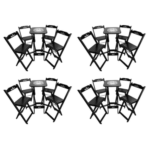 Kit 4 Conjuntos Bistrô Mesa Com 4 Banquetas Dobráveis De Madeira Personalizada Hei - Preta - Cor: Preto