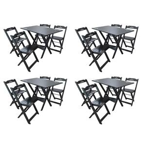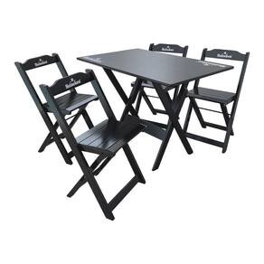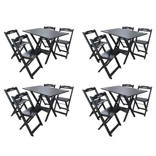 Kit 4 Conjuntos Mesa Dobrável Madeira 110x70 Com 4 Cadeiras Personalizada Hei Preta - Tarimatã