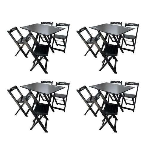 Kit 4 Conjuntos Mesa Dobrável Madeira 110x70 Com 4 Cadeiras Personalizada Jack Preta - Tarimatã