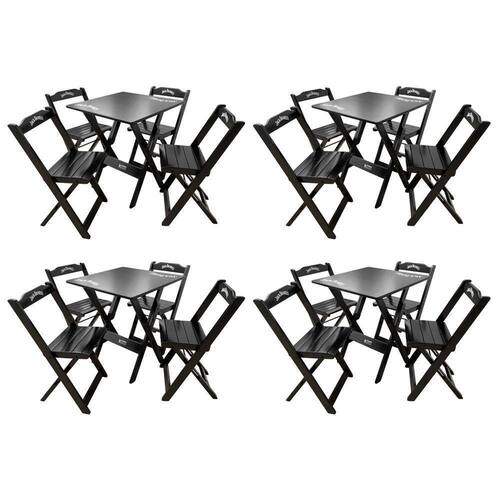 Kit 4 Conjuntos Mesa Dobrável Madeira 70x70 Com 4 Cadeiras Personalizada Jack Preta - Cor: Preto