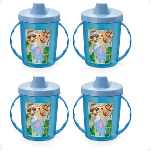 Kit 4 Copo Infantil Com Alças E Bico 320ML Bichinhos 6 Meses Azul Copo Infantil Com Alças E Bico 320ML Bichinhos 6 Meses Azul