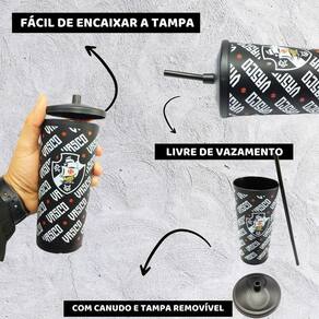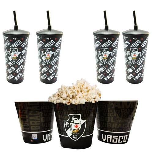 Kit 4 copos + balde de pipoca plástico preto com tampa canudo 500ml infantil criança time vasco O copo plástico com canudo - vasco é perfeito para os mais apaixonados demonstrarem todo o carinho pelo seu time do coração.