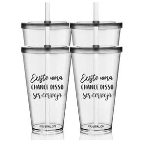 Kit 4 Copos Com Tampa E Canudo Personalizados - Tema Cerveja O Copo com Tampa e Canudo 550 ml é perfeito festas e baladas de muito estilo e quer deixar todos dançando com suas bebidas favoritas sem derramar uma gota. É perfeito para tomar aquela bebida sem derramar a bebida enquanto assiste a live do seu cantor preferido. Especificações: Material: Poliestireno Acrílico PS , Altura: 14,5 cm, Diâmetro: 9,5 cm, Capacidade: 550 ml, Cor: Transparente, Tamanho: Único, Quantidade: 4 peças Marca: Não Informado