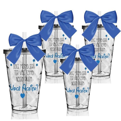 Kit 4 Copos Convite Twister 700 - Você Aceita Pajem Os Copos Convite são uma forma linda e deliciosa de convidar ou agradecer os pequenos por participarem de uma data tão única. Com capacidade de 700 ml, você tem a opção de encher os copos com todo tipo de doce e assim encantar os futuros Pajens. O sim deles será GARANTIDO 4 Copos Convite com Tampa e Canudo Transparentes com 4 Laços em Cetim Azul. Capacidade: 700 ml Material Copo: Acrílico Poliestireno Resistente Laço: Cetim Cor do Copo: Transparente Tampa e Canudo: Transparente Personalização: Transfer Aplicação Direto no Produto Quantidade: 4 Peças Ean: 7897581922905