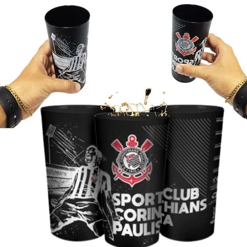 Kit 4 copos plástico premium grande sport clube corinthians timão 500ml unidade oficial Detalhes Kit 4 unidaes