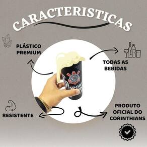 Kit 4 copos plástico premium grande sport clube corinthians timão 500ml unidade oficial Detalhes Kit 4 unidaes