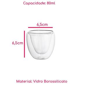 Kit 4 Copos Vidro Borossilicato Parede Dupla Coração 80Ml