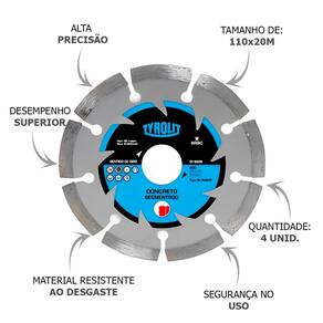 Kit 4 Discos de Corte Diamantado Segmentado 110mm Tyrolit