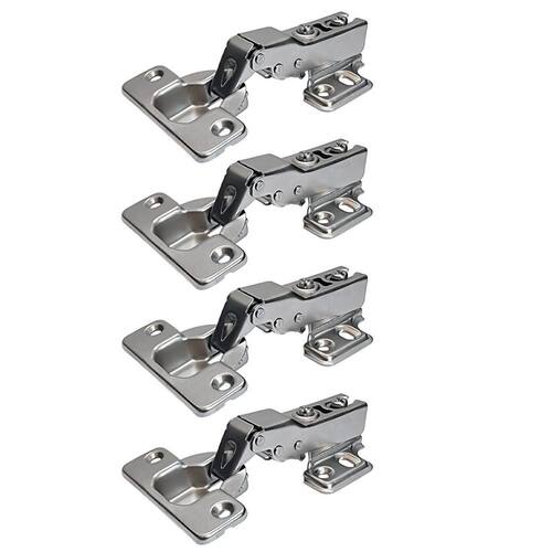 Kit com 4 Dobradiças 35mm Curva para Moveis com Pistão Amortecedor e Calço Slide ON Dobradiça curva com pistão de amortecimento e sistema Slide ON de fixação. Com caneco de 35mm, é a melhor solução para montagem de móveis. - Marca: XF - Fornecedor: Vaz Ferragens - Referência: V19974-4X - Quantidade de dobradiças: 4 unidades 2 Pares - Diâmetro do caneco: 35mm - Tipo de dobradiça: Curva - Sistema de montagem Slide ON, onde o corpo da dobradiça desliza sobre o calço encaixando no parafuso. Após esse movimento, é feita a fixação do parafuso e a Dobradiça está montada. - Corpo em aço carbono - Acabamento galvanizado - Ângulo de abertura: 110º - Profundidade do caneco: 11,3mm - Espessura recomendada para a porta: 14 - 26mm - O amortecimento elimina o som de batidas das portas de armário, - O Calço Duplo, com 4 furos, dá maior possibilidade de regulagem - Produto resistente - Não acompanha parafusos fixadores - Peso: 87 gramas - : 90 dias Marca: XF