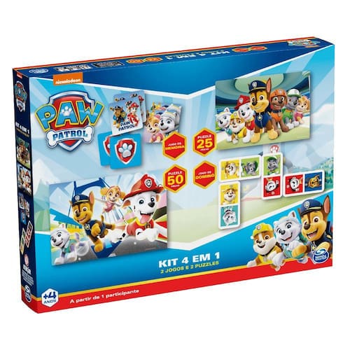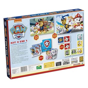 O Kit 4 em 1 Patrulha Canina traz um rico e variado conteúdo para as crianças brincarem e evoluírem em diversos aspectos que fazem parte da infância.