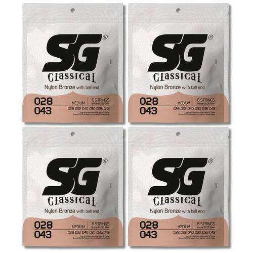 Kit 4 Encordoamento Violão Nylon SG Tensão Média 0.028 -0.043