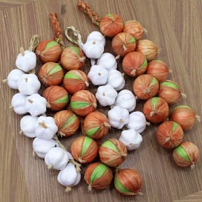 Kit 2 Tranças De Cebolas Artificial Artesanal De 47cm; Kit 2 Tranças De Alhos Artificial Artesanal De 32cm;