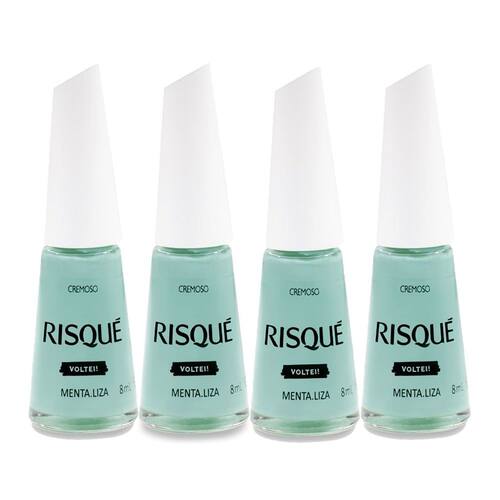Esmalte Risqué Menta Liza Cremoso 8ml O esmalte Risqué Menta.liza é cremoso, de secagem rápida e com ultra brilho, além de ter longa duração nas unhas. Sua fórmula é hipoalergênica, isto é, livre de componentes que costumam causar alergias e seu pincel proporciona aplicação perfeita e alta cobertura. Toda a linha de esmaltes Risqué apresenta textura única, cores elegantes e acompanha as tendências da moda, possibilitando diversas composições de looks e maximizando a beleza da sua maquiagem e acessórios. Apaixone-se pela cor, presencie a longa duração e viva a beleza de suas unhas de forma única com o Esmalte Menta.liza.
