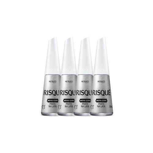 Kit 4 Esmalte Risqué Nova Cor Metálico Cor Prata na Lata 8ml