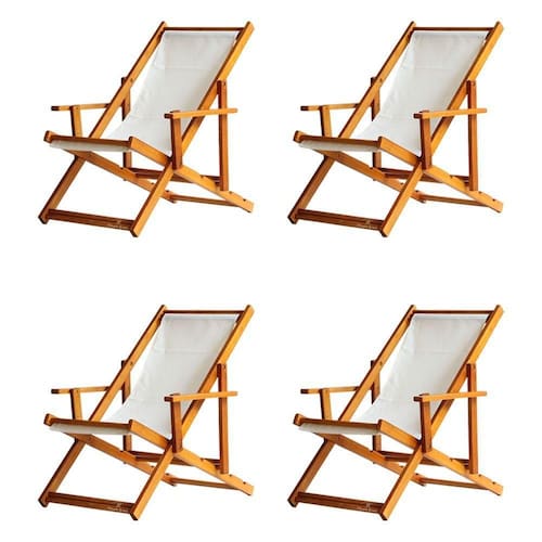 Kit 4 Espreguiçadeira Preguiçosa Dobrável Mel Cb-branco 4 ESPREGUIÇADEIRAS ENVERNIZADA MEL C/BSabe aquele final de tarde que você tanto espera para tirar um descanso merecido? Ou aquela viagem para a praia programada a meses com a família? Pois é, nossas cadeiras espreguiçadeira serve exatamente para esses momentos, com várias opções de cores, os tecidos além de charmosos são hidro-repelentes e se adequam a qualquer ambiente, facilmente removíveis para higienização.Estrutura 100% de madeira maciça de ótima qualidade, a espreguiçadeira é totalmente dobrável e reclinável (4 posições de ângulo), com descanso para braço, sendo possível montar invertida sem o encosto de braço, perfeita para seu lazer em todos os ambientes, esse é o item que definitivamente não pode faltar na vida de quem de fato, quer aproveitar bons momentos! FICHA TÉCNICA DO PRODUTO:04 Níveis de Regulagem de Altura;Tecido Reforçado;Fabricada em Madeira Maciça Pinus;Peso aproximado: 7,5 Kg;Suporta aproximadamente 120 kg;Cor da Madeira: Mel Dimensões aproximadas do Produto:Altura 1: 69 cm;Altura 2: 82 cm;Altura 3: 91 cm;Altura 4: 100 cm;Profundidade: 105 cm. Dimensão aproximada total:Comprimento: 135 cm;Largura: 66 cm; Informações Adicionais:Garantia: 90 dias contra defeitos de fabricação.Acompanha 4 cadeiras Obs. A cor pode variar da foto conforme a tonalidade da madeira e iluminação.. !! Marca: Brasil Móveis