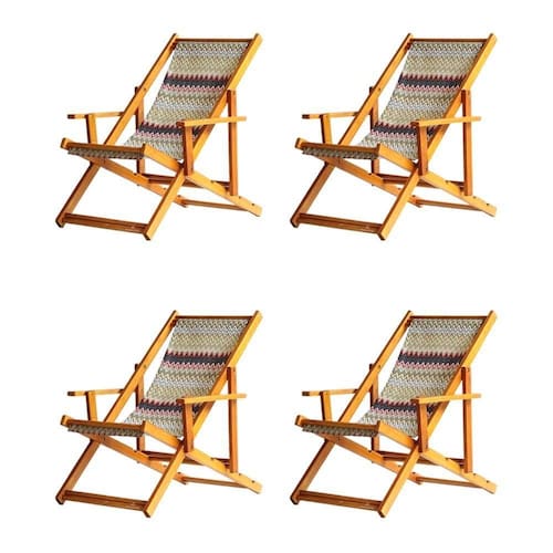 4 ESPREGUIÇADEIRAS ENVERNIZADA MEL C/BSabe aquele final de tarde que você tanto espera para tirar um descanso merecido? Ou aquela viagem para a praia programada a meses com a família? Pois é, nossas cadeiras espreguiçadeira serve exatamente para esses momentos, com várias opções de cores, os tecidos além de charmosos são hidro-repelentes e se adequam a qualquer ambiente, facilmente removíveis para higienização.Estrutura 100% de madeira maciça de ótima qualidade, a espreguiçadeira é totalmente dobrável e reclinável (4 posições de ângulo), com descanso para braço, sendo possível montar invertida sem o encosto de braço, perfeita para seu lazer em todos os ambientes, esse é o item que definitivamente não pode faltar na vida de quem de fato, quer aproveitar bons momentos!