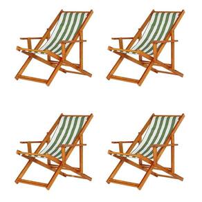 Kit 4 Espreguiçadeira Preguiçosa Dobrável Mel Cb-l Verde/branco 4 ESPREGUIÇADEIRAS ENVERNIZADA MEL C/BSabe aquele final de tarde que você tanto espera para tirar um descanso merecido? Ou aquela viagem para a praia programada a meses com a família? Pois é, nossas cadeiras espreguiçadeira serve exatamente para esses momentos, com várias opções de cores, os tecidos além de charmosos são hidro-repelentes e se adequam a qualquer ambiente, facilmente removíveis para higienização.Estrutura 100% de madeira maciça de ótima qualidade, a espreguiçadeira é totalmente dobrável e reclinável (4 posições de ângulo), com descanso para braço, sendo possível montar invertida sem o encosto de braço, perfeita para seu lazer em todos os ambientes, esse é o item que definitivamente não pode faltar na vida de quem de fato, quer aproveitar bons momentos! FICHA TÉCNICA DO PRODUTO:04 Níveis de Regulagem de Altura;Tecido Reforçado;Fabricada em Madeira Maciça Pinus;Peso aproximado: 7,5 Kg;Suporta aproximadamente 120 kg;Cor da Madeira: Mel Dimensões aproximadas do Produto:Altura 1: 69 cm;Altura 2: 82 cm;Altura 3: 91 cm;Altura 4: 100 cm;Profundidade: 105 cm. Dimensão aproximada total:Comprimento: 135 cm;Largura: 66 cm; Informações Adicionais:Garantia: 90 dias contra defeitos de fabricação.Acompanha 4 cadeiras Obs. A cor pode variar da foto conforme a tonalidade da madeira e iluminação.. !! Marca: Brasil Móveis