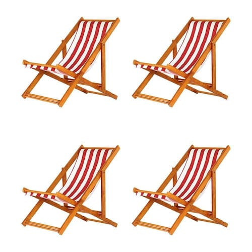 Kit 4 Espreguiçadeira Preguiçosa Dobrável Mel Sb-l Vermelho/branco 4 ESPREGUIÇADEIRAS ENVERNIZADA MEL S/BSabe aquele final de tarde que você tanto espera para tirar um descanso merecido? Ou aquela viagem para a praia programada a meses com a família? Pois é, nossas cadeiras espreguiçadeira serve exatamente para esses momentos, com várias opções de cores, os tecidos além de charmosos são hidro-repelentes e se adequam a qualquer ambiente, facilmente removíveis para higienização.Estrutura 100% de madeira maciça e verniz especial, que garante sua qualidade e durabilidade, a espreguiçadeira é totalmente dobrável e reclinável (4 posições de ângulo), perfeita para seu lazer em todos os ambientes, seja ele externo ou interno, esse é o item que definitivamente não pode faltar na vida de quem de fato, quer aproveitar bons momentos! FICHA TÉCNICA DO PRODUTO:04 Níveis de Regulagem de Altura;Tecido Reforçado;Fabricada em Madeira Maciça Pinus;Peso aproximado: 7,5 Kg;Suporta aproximadamente 120 kg;Cor da Madeira: Mel;Acabamento: Envernizada Dimensões aproximadas do Produto:Altura 1: 69 cm;Altura 2: 82 cm;Altura 3: 91 cm;Altura 4: 100 cm;Profundidade: 105 cm. Dimensão aproximada total:Comprimento: 135 cm;Largura: 60 cm; Informações Adicionais:Garantia: 90 dias contra defeitos de fabricação.Acompanha 4 cadeiras Obs. A cor pode variar da foto conforme a tonalidade da madeira e iluminação..